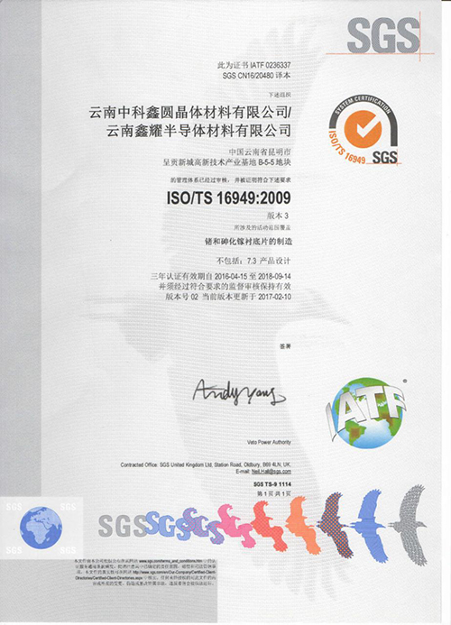 云鍺質量管理體系認證書(英文)