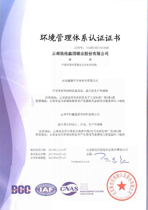 環(huán)境管理體系認證證書(附件中文)