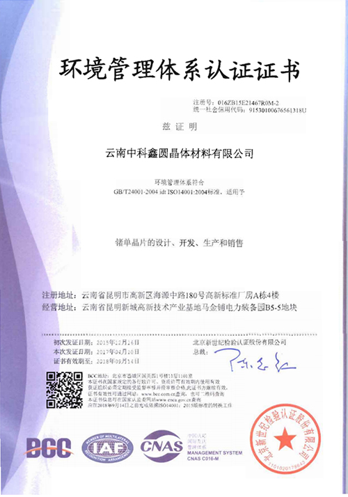 中科-環(huán)境管理體系認證證書(英文)